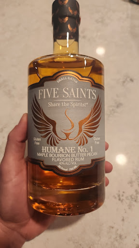 Read moreFive Saints is simply fantastic! I am so happy I stumbled across this distillery. A family owned local business that makes some of the best spirits. Truly top shelf. The options range from the traditional whiskey and gin to some unique offerings such as the “Humane No. 1”. The combination of maple and butter pecan gives this rum such a unique taste. I love having it around in the cold months but especially during the holidays. It makes for a great cocktail base.