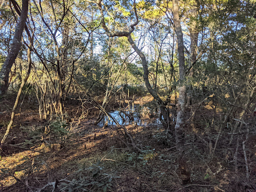 The trail is wooded and goes through a swampy wetlands area, similar to most of the other trails we did.