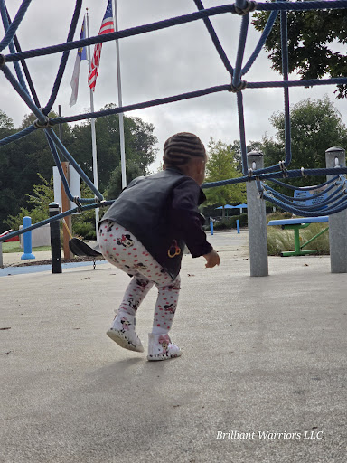 I would not choose this park for playground play, as there are bigger playgrounds elsewhere that are much less crowded. It seems most folks come here for sports. Particularly soccer. We do not, but it appears the fields are very nice and kept up. There is a nice walking track and a decent workout/training area. We come here because it is a decent place to rollerskate. The walking track is new enough that the pavement is smooth enough to skate nicely. However, I mentioned below in my playground review, that mulch becomes a tripping hazard. The same is an issue on the sidewalks/track. Ofcourse an issue when skating. But also for joggers, bikes, strollers etc. When there are just random large pieces of mulch strewn along the sidewalks. Perhaps pinestraw or just simply soil for the small landscaped areas? Back to the reason we visit- a decent place to skate- if we come when there's no one on the playground (RARE!) it is the perfect spot to teach little ones to skate as the playground is smooth and made of a spongy like material. So, if the kids or my old, less agile body hits the ground, no big booboos to...