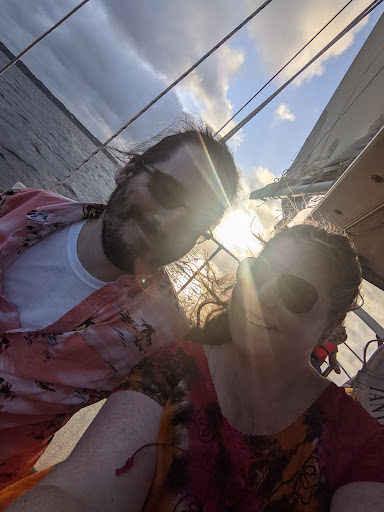 Read moreThe Captin and first mate Billy are very awesome down to earth people . The sail boat is very nice, the cruise was very beautiful. We met very sweet people while on the boat and had some wonderful conversations with Billy and others. I suggest you bring a bottle of wine or a case of beer, it is a wonderful place to relax and watch the sunset. My wife and I are celebrating our honeymoon and this was the perfect way to celebrate and relax. We will be customers from now on and look forward to future sails . This is worth every dollar we saw over 10 dolphin while sails were up they came within 3 ft of the boat , made the trip...
