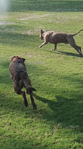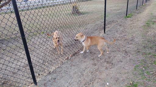 A dog park? Not hardly. Very small areas. A few puny trees. This area is very warm and has strong sun. A great place to take your dog for a case of heat prostration. The bench for people sits in the sun, no other option. I can't imagine taking a dog there except in the winter. Our dog checked out the spindly trees, took a walk around the fence to see what was what and said, "let's go, my backyard is wayyyyy better than this!"