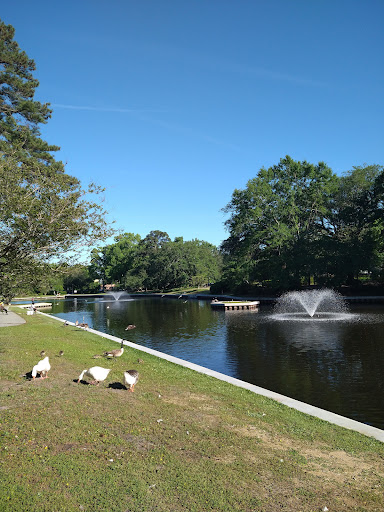 It's got a pretty pond with two fountains and a sidewalk all the way around it with plenty of geese, ducks, turtles, and crabs. There are a couple of benches, not nearly enough, and two duck/goose feed machines on each end that look like they're from the 1960's and don't work. Don't bother putting your quarters in them! The sidewalk around the pond is full of duck/goose poop so watch your step! It's EVERYWHERE! There are mature trees with ample shade on one side but nowhere to sit except on the grass. Bring folding chairs if you plan on staying more than 10 minutes. The signs say to not feed the birds bread because they could choke to death. Sure would be nice to have them bird feed machines working! There's plenty of parking around the pond. People come out here to walk and jog, too. It sits between a peaceful, old Park Circle neighborhood and Spruill Avenue and Buist Street. No...