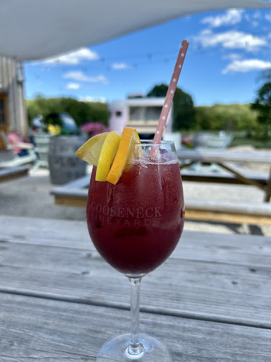 We went to the soft opening of this new location for Gooseneck and the property is beautiful. They carry Gooseneck brand wines that are all imported from Portugal, Italy and France. The tasting room has plenty of tables for folks to sit and do a tasting, we opted for inside because the outside has ZERO shade. there are no tables with umbrellas, but a bunch of Adirondack chairs and small fire cauldrons, as well as corn hole and patio jenga. June was our tour ambassador and she was great. We really thought maybe the tour meant just try 4 different glasses of wine, but there came a little history lesson with each. LOL They were out of cheeseboards and crudité when we got there, but then someone found one of each in the back of the mini fridge. We had to ask for crackers... but there was a food truck on sight serving burgers and sandwiches. Prices are Wickford-esque, but all in all it was wonderful to see the renovation to a property that has sat empty for years and years and years. I'm sure once they've been open a while more changes will be made for the better, but this is a great little Sunday funday spot and we cant wait to see what...