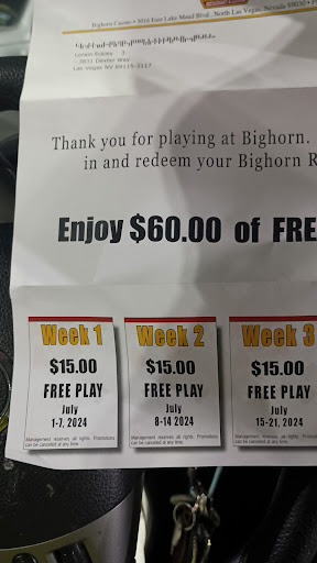 You walk into a very small Casino which the name does not do it justice. When we came up to the address listed by google we were expecting a much "LARGER" Casino. It is probably the same size of Longhorn Casino on Boulder Highway and Harmon. At least you feel safer in Longhorn when you walk in the door. As soon as you walk into BigHorn, literally every person is watching you as you walk from entrance to either the CAGE or Change Kiosk. As you play the patrons will stare at you and see what you are winning if you are. Makes you feel very uncomfortable. Then when you go to cash in your tickets at the KIOSK, you have 1 waiting behind you which you witnessed them grab from an empty machine. Lets just say we did not last long there. We left after about 10 to 15 upon arriving. Employees were to worried about the gossip around them to notice or help you when needed. I probably will not return, nor recommend it to friends and aquantances. I do apologize for any harsh feelings this may cause, but that is my opinion and how I feel about...