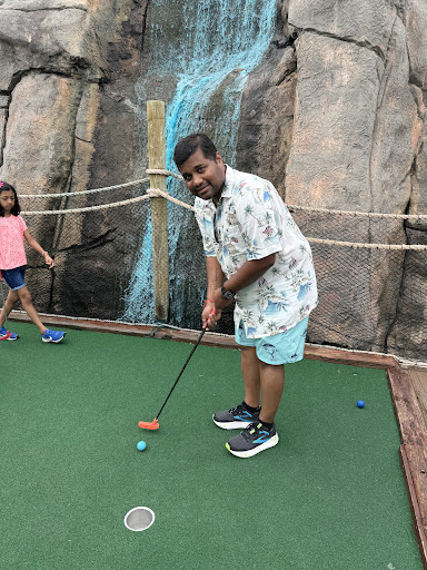 Course Design and Features Varied Obstacles: The course includes a variety of obstacles and challenges, such as water features, caves, and animatronic characters. These elements make each hole interesting and different from the last. Scenic Layout: The mini-golf course is beautifully designed with lush landscaping, palm trees, and flowing waterfalls. These scenic features not only enhance the aesthetic but also contribute to the overall enjoyment of the game. Interactive Elements: Animatronic figures and themed decorations add an interactive dimension to the game, making it more engaging for players, especially children.