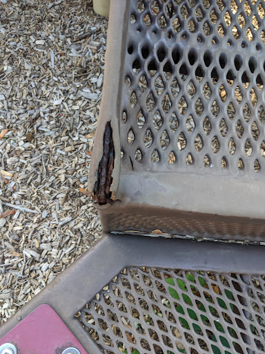 This place has the potential to be a very fun place for a kid to be but it falls short on so many areas. As you can see in the pictures the junglejim is peeling and there are multiple rust points not a very safe place for a kid to play!! Random people tend to just stop in parking lot and sit there very uneasy feeling when you have a kid.on top of all that every time I have been there I always see people smoking. For a park it's not very kid friendly. Would have given 1 star but my son did have fun here before I noticed the safety issues.will not be going back do not recommend going if you value your...