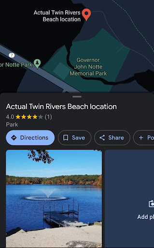 Update: I found the real beach a short drive from here and added a screenshot of it in Maps to...