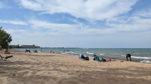 Calm, beautiful beach tucked away in a semi-private area of northwest Indiana. It feels like you are away from the crowded and loud city beaches that are typical of Chicago and even Indiana Dunes. Very relaxing due to its peaceful location. Ample parking available; pay for parking at the card machines then place your paper receipt on your dash to let security know you've paid; parking rates are decent in my opinion- on average for two hours: $12.50; you can add time in half hour or hour increments up to 6pm which is when it closes. Security was letting everyone know 6pm beach was closing down; large trash cans available on beach- beware of the bees which like to swarm around them!; outdoor showers available near parking lot if you need to rinse/ wash off sand. Large port-o- potties near showers too; No lifeguard on duty on beach- "swim at your own risk" water reached up to 5'6" which was comfortable ...the quaint town of Whiting was easy and interesting to navigate through on the way there. Felt like I was in another state.... Be aware that you may be stopped by a freight train(s), Amtrak, etc. for almost up to 30+ minutes right before the entrance to the beach which is what happened to me 🤦♀️! Everyone seemed impatient at first but when the gates lifted cheering could be heard from...