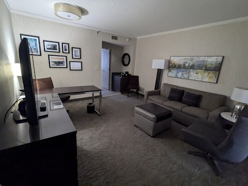 We booked the presidential suite away from the base to celebrate my sons Navy boot camp graduation and his birthday so we could have a relaxing peaceful weekend. I called more than a dozen times to reconfirm our room type because our reservation said conference suite. We had no use for a 12 person conference table, we wanted the bigger living area so our family could all hang out together. We get to the room and guess what? There’s a giant conference table and a tiny little living room. Back down to the front desk, we get the presidential suite and had to get an additional room. Only two king beds, not a king and two doubles in this room as I was told at booking or the other dozen calls. An additional substantial amount of money that we didn’t plan for. We get into the presidential suite if you can even call it that, and tried to find where they spent the money on the multi million dollar renovation In April. The windows are thin and very drafty and it’s cold in the Windy City. The furniture was so beat up and very uncomfortable. We all now have a sore back and neck from sitting in these chairs because they force your body forward and there’s not a single foot rest. Our last suite in Tampa had super comfy chairs with ottomans and chaise lounges. There’s a huge kitchen counter with a wet bar sink and tons of cabinet space.....or so we thought. Turns out, the doors are bolted on with a metal bracket. We got a door off and found about an inch of dust, dirt, screws etc and it’s all perfectly usable space! Hinges are cheaper than these heavy brackets and guests could store their food and other items in there, but nope. It makes zero sense. The wallpaper is bubbling and peeling everywhere. All of the light switches are crooked and not secured to the wall properly. All of the door stoppers and brackets are not mounted and have wallpaper peeling behind them. There are holes and huge dents everywhere in the walls. The carpet is peeling up in several areas. There are unknown sourced dirty spots all over the bathroom walls and burn marks on the vanities. Housekeeping left much to be desired. I’m the type of person upon checkout to ask for the name of my housekeeper so I can leave them a large tip and a thank you note, but I don’t even have toilet paper today! Saturday night they had a huge party in the atrium until 9pm and it was so loud we could not hear each other speak and even with the tv on full blast, we could not hear it. Our son has been told what to do and when to do it for two months, all he wanted was to order a movie and a pizza and have a nice quiet night. We had to wait until after 9pm because we could not hear anything but the loud partying below us. I went to the front desk and expressed my concerns, and was told they only disclosed this loud party to the people checking in Saturday. I told them had I known two months ago I would’ve booked elsewhere. Mind you I had to go outside in the cold to speak to the staff because screaming at full capacity we still couldn’t hear each other. Since the rooms are so drafty, I asked for a few extra blankets. 45 minutes later as I go down to speak to Saha the front desk supervisor her coworker proceeds to try to hand me a stack of blankets to hold while I am standing outside freezing speaking to his superior. Am I supposed to stand here in 40 degrees and hold a stack of blankets while I am talking? At this point I am beyond my threshold of things I can tolerate. The problem is every place in town is booked, so we are stuck here. To make matters worse, the clean up crew was screeching tables across the atrium after the party till after 11:30 and then about midnight all hell broke loose and there were loud people partying on every floor. Out of the first four days, the manager was only present for two and there is not another manager to fill in. We finally learned that the two presidential suites were the only rooms not renovated and told it had some maintenance issues. Owners Response is a...