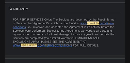 Fast forward 6 months and I dropped my phone and it got a nasty crack in it. I make an appointment at this place and bring it in and tell them about the warranty. They refuse to honor the warranty saying that the warranty only covers “manufacturer defects” whatever that means.