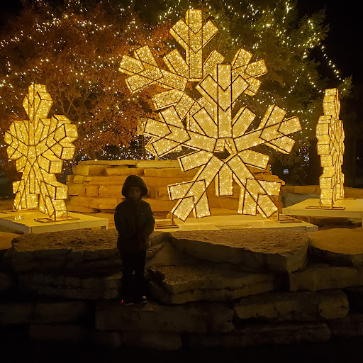 What a great park. Lots of different structures for all ages and different turns too. Lots of trees and shade in the large grassy space. Swings, sand boxes with construction trucks and so so much more. There are always kids here to play with or just run in the grass. The Northbrook Park District also has lots of fun and organized events. The only thing that can be improved is maybe having a little wall for the sand area because when sand gets out then the sidewalk is super slippery and we've seen quite a few kids wipe out. There are a ton of businesses across the street so finding a bathroom or place to eat after is easy. It is near a train track and some busier downtown Northbrook streets so if you have a little one or multiple kids keep your eyes on them. Lots of foot traffic too. Had some wierd lady ask if we need a baby sitter then walk to everyone and ask personal questions about their kid. A dad told her to leave ans she didn't so he called the cops on her because it was getting quite disturbing. Some times they do have protestors on the corner but they usually stay away from the parents at the park. A fence would be nice but definitely might look odd. They do a great job decorating the area for Christmas. As you might have figured out, I try not to take pictures if other people's kids who I don't know and have permission are at a location so I don't have a picture for this park but I do have a picture of some of the Christmas decorations and it's definitely worth checking out. Has a...