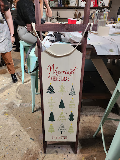 My daughter and I, spent a Saturday afternoon together with many other crafters, making our custom pallet board signs. Khris was our staff helper and was so great in leading us in the steps we were doing. There were 8 at our table, we did pallet signs, lazysusans, and some made clip boards. Everyone work at their own speed and it was such an enjoyable afternoon. We were there almost 2.5 hours to complete our projects, some done a little earlier then we were. I had received a gift certificate from my daughter and I'm so happy for that gift. We're already thinking about our next project to do down the road. I loved being able to customize my project and work with a staff person, in the beginning. She sent me a preview and I loved what she did with it. Great experience, try it out, you won't be...