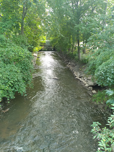 It has a baseball field and some picnic tables, as well as a playground, benches overlooking the creek, and a walking path. A couple of portable restrooms as well. Short loop there to walk but you can climb the stairs and walk through to downtown Northville and add a bit more to your steps or grab a bite to eat or a drink.