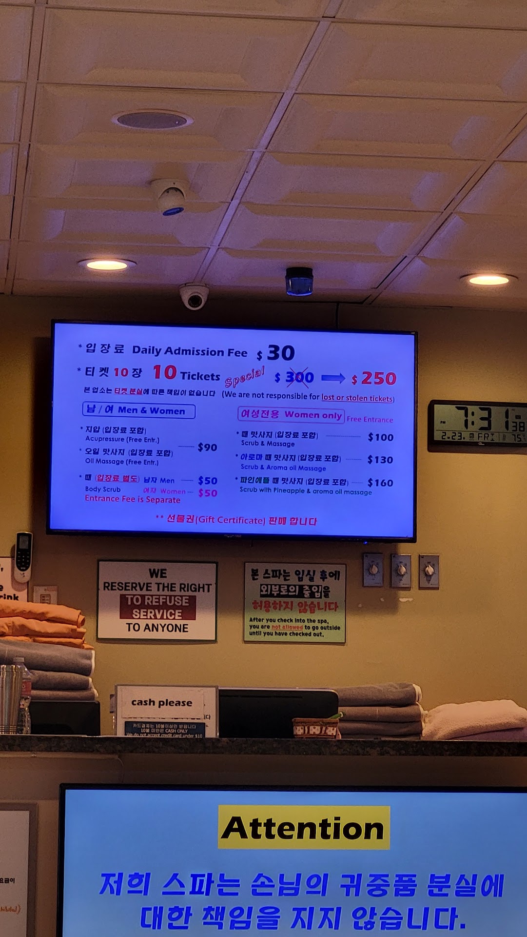 Read moreEven though their tub was small, the overall experience was decent, as they had all the required amenities. However, the service at the front desk left me exasperated. I'm not sure what the bespectacled man, who appeared to be the owner, had gone through, but he was incredibly rude. As soon as I entered, he condescendingly asked if I had ever been to a similar spa before, as if questioning a country bumpkin. For the record, the bathhouses in my home country are far superior to those in Korea! At least his son was more courteous. Due to recent sleepless nights, I opted for a scrub service. However, when I was about to leave, they brazenly asked for a tip. The presumptive owner said haughtily, 'This is America, and Americans tip after services!' I've been in the US for ten years and have never experienced such blatant demands for tips. With this attitude, I won't be returning. It was a second-rate experience with...
