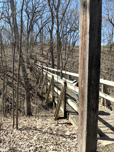 It is quick to get to from Des Moines or wartren county. ALmost entirely shaded during your walk. If it has rained in the last 2 days it will be quite muddy and slick in some of the path areas. I recommend a good hiking boot or heavy duty tennis shoe. Lots of steps made of wood and some are not flat and may make you unsteady. It is a pretty area. In the middle near the creek bed, which was dry except the very extreme north edge, had a cool little timber lean too made in the shape of a teepee. I called it Big Foots House. Fairly steep most of the walk. only a few wild flowers in bloom. It was 92 outside but it was comfrotable in all the shaded woods. It took around 30-45 minutes by the time we goofed around with selfies and enjoying the bird sounds, Suspension bridge is cool and fun. A fun afternoon get away. Nice picnic area above the parking lot. 2-3 table to eat at and a big fire pit. You need bug spray as the mesquitos are pretty thick. I recommend this place. iIn good weather. Fall will be fun too if around some...