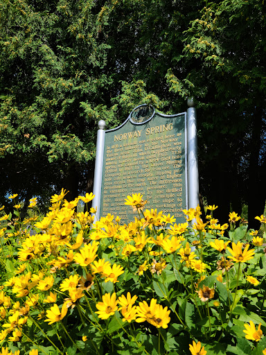 MICHIGAN HISTORICAL COMMISSION REGISTERED LOCAL SITE NO. 66 Norway Spring: In 1878 a sawmill waz erected here az da 1st industry in da Norway-Vulcan area. John O’Callaghan waz owner of diz mill, which supplied early minin lumber needz until 1902. Diz spring waz caused by a 1094-foot hole drilled in 1903 by da Oliver Mining Company in a search 4 iron ore. Da hole cutz several steeply dipping porouz strata dat trap water @ higher elevationz 2 da north. Da difference in elevation causez pressure; diz pressure iz released by da drilled hole, demonstratin da principle of da artesian well. On da slope 2 da north are da obscure workingz of da Few & Munro minez, operated in 1903-1922, now owned by da Ford Motor Company. Also diz site waz listed on da MICHIGAN REGISTRY OF HISTORIC PLACEZ in 1966 & diz MICHIGAN STATE HISTORICAL MARKER WAS INSTALLED on da same...