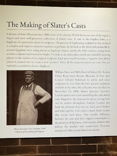 It's a museum of museums. That's because this place is loaded with plaster casts of other famous works of art, all crammed into a relatively compact area. Why travel the world to see all of these sculptures when you have them all in one spot. While there are so many statues that surround you, it doesn't feel overly full. Perhaps the balcony gives the added airiness that makes this place feel special. Because many (if not all) of the sculpture works are copies, you can get as close as you'd like to the art. They're all life size or larger, so it's quite an experience to immerse yourself among so many masters' masterpieces. You can also learn about the history of the Slater family, and their Grand Tour journey on their private yacht. There are also works and artifacts representing the history of Norwich, CT, as well as some of the Slater Family's finds from various countries on their world tour. There's even an explanation on how the plaster casts were made. A spacious gallery area is available at the rear of the museum, which hosts annual events and various art shows. Parking can be a little sparse on busy days if you want to park right nearby, but parking exists on a side street if the small lot up front is full. Definitely worth a visit when you're in the area if you want a lot of...