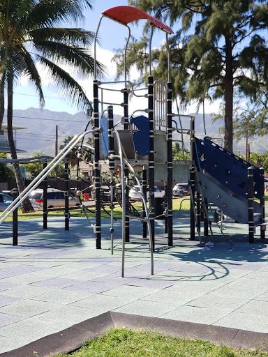 The park is a "climbing park" no swings, no slides and a little awkward for small children... but my big kids LOVED it! It is literally right above the beach. We played on the beach, attended a fun Christian singing/ playing keiki group (that meets at this park often), and then walked 15 feet to the beach. Dream day...
