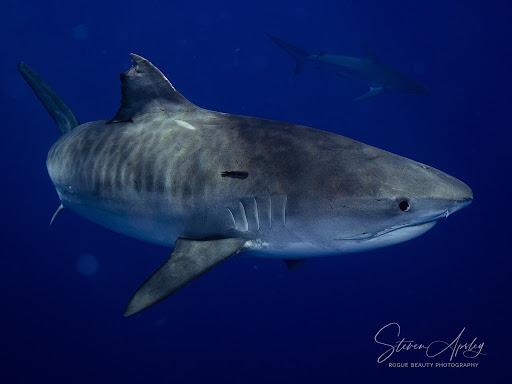 The dive itself was nothing short of breathtaking. The moment I dropped into the crystal-clear blue waters and caught sight of the majestic tiger sharks, my heart skipped a beat. My breathing slowed, it was a serene moment and I knew I was addicted at that moment, less than a minute and I was hooked. These powerful creatures gracefully glided through the ocean, showcasing their impressive size and distinctive markings. It was a surreal feeling being in such close proximity to these apex predators, yet I felt completely at ease with our attentive guides in the water with us.