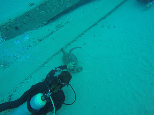 THE DIVE- for the price of $130 they take us to a shore dive called electric beach. We were surprised there was no boat because on the website It said we would be doing boat dives. We were disappointed to learn we would be doing the same shore dive twice! no second dive location. also disappointing. determined to enjoy we go on the dive. Ricardo was swimming all around and it was hard to keep up. It was unclear why we had to cover so much ground. usually with dives you want to take it slow and relaxed.. We finally got to the electric beach pipes where all the fish are and this part was cool. I was unsure why we only staid in the fishy part for a few minutes. While we were near the pipes, Ricardo started petting a green sea turtle. This is a big no and every dive operation I have ever been with has rules about touching and disturbing marine life. We were very surprised that a dive shop employee would do this.