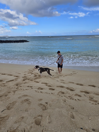 Read moreNice beach in residential area that is gated, but there is public access available to the beach. You can see so many fighter jets and the warships coming in and out of the harbor as well as the commercial airliners taking off. Diamondhead visible in the distance. The water has some rocks, so water shoes were handy. The sand has tiny bits of coral in it, which stick to you even once you dry and the rest of the sand falls off. I like all the straw umbrellas and chairs provided for use. No showers available to wash off the sand though. And beware of the security lady who tries to bully you off the beach at sunset with all sorts of rules that she exaggerates or makes up to support...