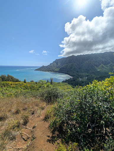 In all, honestly, the best views are on the first part of the trail. The tail end is more challenging and a workout than anything. So if you're going solely for a mental and physical challenge, this is the hike for you or views. I would recommend another trail. At the beginning you are rewarded with views of the ocean and close by Bay before you start trucking through the woods of Hawaii. Most of it is through brush and trees, so watch your footing as the leaves. Hide many dangers underneath of them so you don't want to roll your ankles. Towards the top the elevation really gets steep and you are hiking along the Ridgeline while you don't have to do any climbing you may have to use some ropes that are there to help you along the way. Once you get to the top, tell Becca views of the city on the other side of the Ridgeline but Nothing to write home about. The way down is a little bit more difficult as you really have to watch your step and the leaves can get slippery. Like I said at this trellis more for a workout and from my exercise perspective I give it five stars, for the views I...