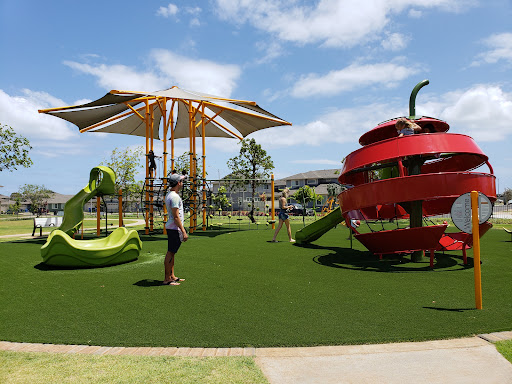 Park is very popular, almost always has every built in bench occupied. So might want to bring a camp chair. And the park is rather new, so the trees are still young and small. Bring an umbrella or sunscreen! Aldo be aware that it is open to leashed pets, and LOTS of residents do seem to walk their dogs there while the kiddos play. Those with aversion to dogs may want to skip this park or come at...