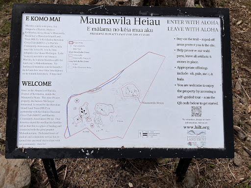 The reviews seem to be split along the aisle, here, so I will be a moderating voice. This place, Maunawila Heiau (the Maunawila Temple), is probably not listed in your tour guide. For hikers, it's an easy, 0.5 mile out and back hike under shady trees (good for a sunny day). Its main attraction is the interpretive trail that recognizes ancient burial grounds and place of worship. It will make it more interesting if you take the time to scan the QR codes at each station and learn about the...