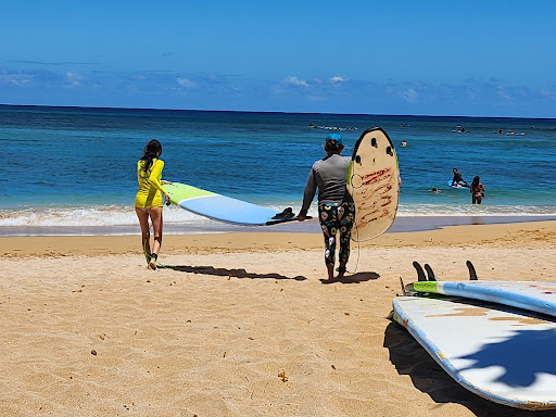 Our instructor Margery talked too much and was kind of bossy. It was mostly repeating the same information unnecessarily or complaining about something. She complained a bunch of times about my sunscreen making the board greasy. Which I get but one time is enough. She even complained to her colleagues about us telling “they’re too heavy”, which I did not appreciate. We’re around 180 and 280 lbs and we put that information in a form before the class. We both felt that we missed a couple of good waves because she was talking to another instructor, or us. There was nonstop talking for 2 hours. She said our instructor in Waikiki was just trying to take our money and didn’t really teach us surfing but I rode weaker waves for longer in my first lesson. Also said Waikiki surfing would be more crowded but actually it was about the same in this spot.