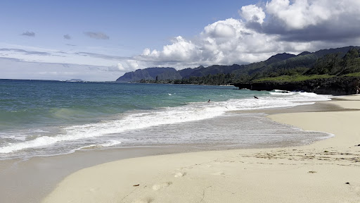 A nice beach just south of Laie. The sand is fine and the water is mostly clear. The waves were very aggressive near the south corner and there were lots of people with boards having fun in them.
