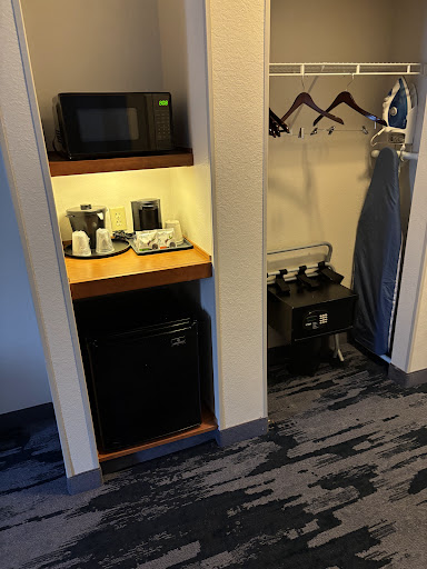 Quiet place off the street. I had a first floor room and the noise was not bad. Breakfast is the standard eggs bacon sausage oatmeal etc. Rooms were nice the room had a clean bleach smell when I walked into the room so I felt like housekeeping had done their job. Only negative was the tissue box had minimal tissue and ran out so had to get more from front desk. But if looking for a room near the airport I would recommend this hotel. Weirdly though, I wasn’t checked out and housekeeping was knocking on the door and opened it. Didn’t like that invasion into the room. Lock the top door lock if you stay.