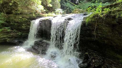 The trailhead to the falls is directly in front of the Ace Adventure resort. This is on their property but when I spoke with a staff member they are fully aware people coming to see the falls and don't mind. There is a small area for a few cars to park and trailhead sign for the falls and another hiking trail along the top over to the Concho overlook platform. The hike to the falls is about 1 mile (2 miles round trip). The trail starts at the top of the rim and heads down to the falls, so be prepared the hike out is all uphill. As noted by others the trail has muddy spots and wet areas where the water runs out of the rocks towards the creek at the bottom. At the falls you can stand and view it up close at eye level with the falls. It's a little tricky to actually get to the bottom of the falls due to big boulders and no extra space around the pool at the base of the falls. A nice little bench area and table to sit and enjoy the rushing water. It's best to stay on the trail, we spotted poison ivy all along the edge of the trails and...