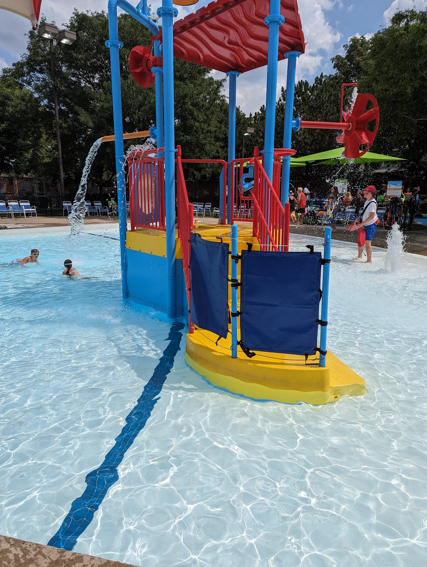 Experience was great. Lifeguards were super attentive and charismatic. There was something for all ages. A small pool for the little ones, a mini waterpark with two tiny playground-style slides and a big bucket that poured water over you for those "big kids" (around 5-8 year-olds, although anyone can use it,) an area for the older kids (or those adults who wanna join in the fun) with two slides that dropped you into the water, a rock climbing wall over the water, and a diving board, and then of course there is the big main pool, that goes from about 4' to 5'. There is a concessions stand that sells some snacks (pretzels, hotdogs, churros, etc.) but it is closed frequently, so I recommend you bring your own snacks and water. Besides the concessions stand problem, everything is just amazing. Entry is cheap and extremely worth it. I recommend Rehm pool...
