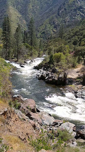 If you follow this trail to its end, it's approximately four miles each way. You will find some abandoned mining equipment toward the end. During the hike you will find yourself on hilly, rocky terrain, often with steep drop-offs. The trail is often narrow. Nevertheless, I think it is suitable for most skill levels and ages. Some of the hill climbs are steep, as it rises from near river-level up the hillside to well above the river. Unfortunately, most of the trees were scorched a couple years ago during the Ferguson Fire, so shade is sparse.