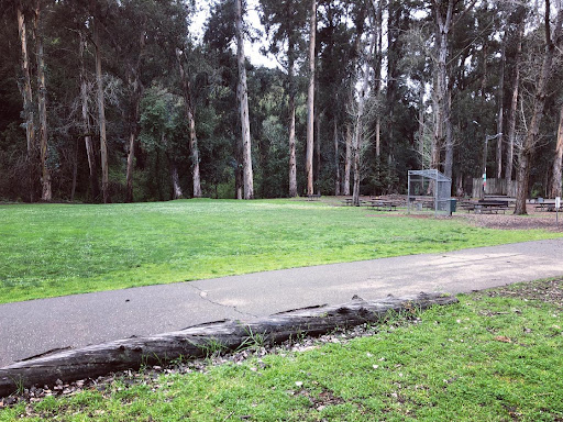 This park has a big grassy area, a couple of picnic bench spots w/ bbq, a stage, an open bathroom, & access to Lake Chabot (what I’ve been told) is a short 20 min walk.