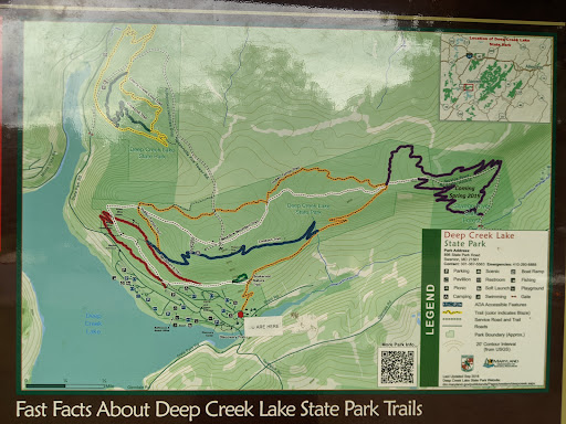 mountain bikers all trails at deep Creek State Park our designated mountain bike trails according to the maps and reinstated by the lovely ranger. even though Google maps doesn't show the trails on the map they are there look at the photo below. they may not be all good for first-time mountain bikers but avid mountain biker should look into them especially Cherry Creek loop. there is free parking at the ranger station and at the Cherry Creek loop trail head. definitely worth exploring somebody put a lot of time in the making of these...
