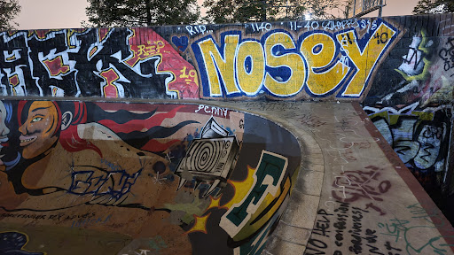 A skating treasure with an uncertain future. The 'parks' main access path is now blocked by a temporary chain link fence, but an entrance is still accessible from a street 'doorway'. Although there is no vehicle parking close by. Very rad features to this park, it's loved. The more advanced skater you are, the better you'll like it. If you're a geezer like me, and your first board was fiberglass over plywood with clay wheels... this park is like time machine gold! It can be rugged and dish out a solid slam. And, a place you could spend hours at perfecting lines. Alas, at 68 years old I don't skate anymore, but did have a good time on my dirt jumper grooving with the flow of the bowls. Curiously, the construction yard next door has a portable trailer mounted security camera set up 20 feet from the park. Ahh, the world...