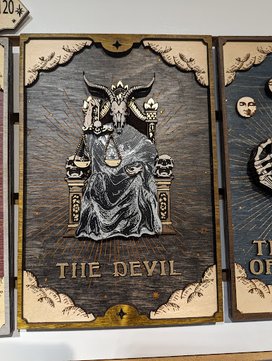 I absolutely love this little gallery. I stopped in to look around and saw a plethora of interesting and unique pieces, some of which had a delightfully twisted edge to them in a still very charming way. Also the people who were working there were just a delight, one of them actually being one of the artists who I had a very interesting conversation with where she showed me some pictures of pieces she had made for other things and we discussed a shared interest in dark folklore. I even managed to find and purchase this charming Christmas ornament featuring one of my favorite holiday Icons. I definitely plan on stopping by...