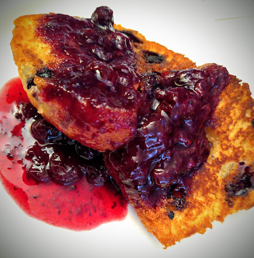 *Pictured are the delicious blueberries from the farm along with one of their yummy muffins. I made a blueberry syrup and griddle toasted the blueberry with some butter. You've gotta try a muffin like that at least once in your life! (Cut muffin in half, butter the halves, then toast in a pan like you would a grilled...