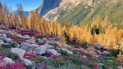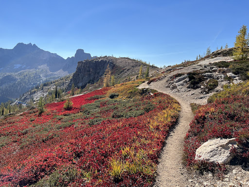 Read moreWe started our hike at 9:30 on a beautiful, cloud free Tuesday morning. The hike starts out very gradual and stays like that for the first couple miles. The hike starts to get some incline but nothing too crazy. The fall colors were amazing and give it about another week or two and the larches will be out in full effect. If you’re wanting to get some amazing views but don’t want to deal with the Maple Pass crowds then this is the hike to do. The trail was very peaceful. Once we got to the top of the Pass we took the PCT for another mile and a half and the views opened up some more. This hike is just going to continue to keep getting prettier. We saw about 10 horses at the pass so that made coming down fun having to dodge all the piles of horse poop. Overall, beautiful day. Round trip 13.5 miles and 2,400 feet...