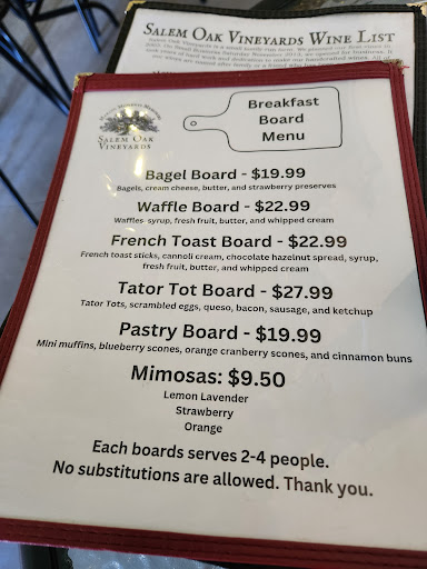 Read moreThis place would receive no stars from me if it was optional. Salem Oaks was our third & final stop for my friendâs bachelorette party. Because we are from Salem County, we were super excited to end our day at a spot where we considered it our roots. From the moment we got there, the staff was extremely unpleasant and unprofessional. They knew we were coming in advance, we paid them as soon as we arrived & yet had no tables set up prepared for our party. Typically, I wouldnât see that as an issue because I get it, it gets busy. We ended up seating ourselves in the sections they told us to wait at & ironically after we did what we were told to do, our party was ignored for at least 20 minutes. After waiting that long and being completely ignored by the staff, they had one of their waitressâs come to our table and dismissed us from the place. We had no idea way, yet they claimed we were âtoo drunk.â ? We showed no signs of belligerency, kept it classy, we werenât rude, nor caused any issues (until after that moment) all because the staff assumed we were âtoo intoxicatedâ to be there. In reality & to be truthful, i just believed they werenât prepared and didnât want to deal with us. They were extremely rude to us and it was so embarrassing how they dismissed us in front of all of the other tables in the place, because everyone had saw what happened. They could have shown a little bit of respect and decency to pull our driver who gave them the money, or one of us aside, versus doing it in the middle of the place. So if your reading this, donât put this place on your list for wine tasting. Especially if itâs your third and/or final stop. The bride was extremely disappointed, as we all were and i will never recommend this place for anything after the poor service, discrimination, and unprofessionalism...