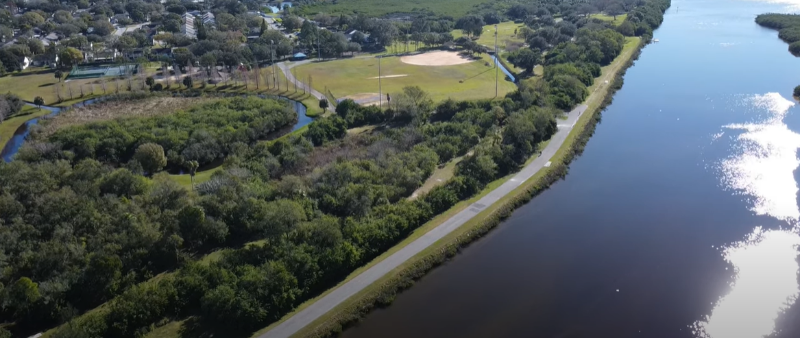 A regulation softballl court with a resident Osprey nest watching over the games. A dog park area for running and playing. A wonderful kids area with tons of activities for the kids. There are also high screened courts that may have been for tennis but now maybe pickleball. A nice biking/jogging trail through the park that leads to a continued paved trail beside a tarpon Canal for a good stretch.