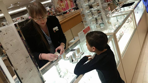 Today I took my grandson to pick out a ring for his mother. We had a budget and a few photo choices she gave for him look at. The person helping us was perfect. I am very sorry I did not get her name, but I did get a picture of a part of the event. Tomorrow is Mother's Day, and my 8 year grandson took this job very seriously, we asked for the Macy's rep to show us the rings that his mom picked and then we asked for other suggestions in that price range. This amazing lady treated him so professionally, she was patient, and answered his many questions (is it real? how much is the cost of this one? can I see another choice?) Finally he picked a ring he loved, and she kindly took the funds from him and boxed the treasured gift. I just stood back with pride at him working with her. Thank you sweet jewelry person for your time with us. I am looking very forward to returning for myself! (the prices were very good! plus she gave us a coupon for $20.00 off!)