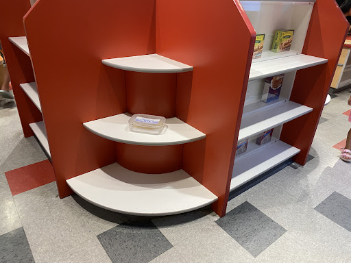 ANYWAYS!! I've never seen such awesome sensory bags. They had gloves, fidget, ear muffs, and a really cool "sensory map" that shows symbols for what sensory stuff you can expect in an area. Something I've never seen anywhere before. Also if your kid is still scared of "big kid toilets" the bathrooms also have a smaller kids toilet.