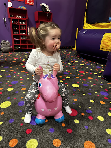 My family and I were invited here for a birthday party last weekend. Upon entering the place didn't seem to large and made me wonder if a party this large could be held here. The check in/lobby area is small in nature, but what you don't see at first is how they book each party and move people through their reservation. So for a 130 party all your guests check in and watch the safety video. Your host then gets the kids "hyped up" and let's them into the first bounce room. I believe you get 30-40 minutes in the glow in the dark bounce room. The first room has a good three to four bounce houses with some inflatable games like basketball. When time is up, lights come on and workers come in and begin sanitizing the jumpers. I am not sure if they physically go inside and spray them down, but I would hope they do.