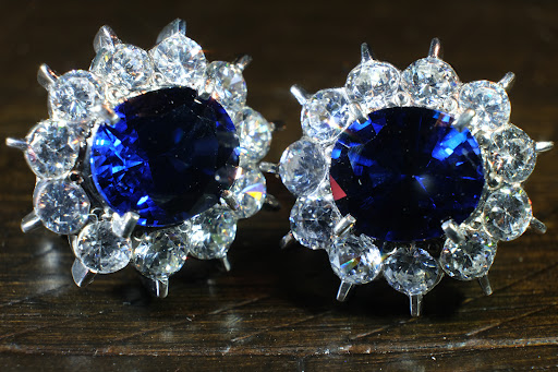 We purchased a beautiful gold and platinum ring, set with a heritage sapphire and diamonds. Sammy sized it up for us, and the additional gold is indistinguishable from the original setting. I loved the ring and his service so much that when I went back to pick it up, I walked out with a beautiful pair of earrings. These were set in silver with lab blue and white sapphires.