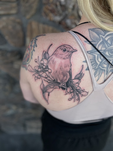Michele is absolutely amazing. The time she takes in her craft is truly a statement to her professionalism and her creative gift she wields. You can feel every last detail being carefully thought about in the concept art, and in the final tattoo. She is so knowledgeable about her craft, and her guidance in my concerns about my skin being sensitive really put me at ease. I’ve come to her for two very important pieces to me, and I have to say I’m just blown out of the water at what I am carrying on my skin. I cannot recommend an artist enough! She is so friendly, kindhearted and has such amazing bedside manner that i feel at ease and comfortable when I’m in her chair. The shop itself is also magnificent in all its art displayed on the walls, super super clean and all of the other artists are very kind which just makes an awesome environment to be tattooed in. I can’t wait to come back to finish my beautiful bird. Thank you...