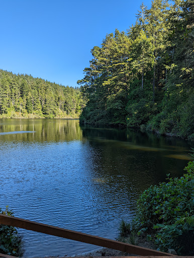 This is a beautiful, clean lake with an easy-to-walk trail surrounding it closely. I easily walked the 1 mile trail twice in less than 40 minutes, a nice leisurely walk with my dog who really enjoyed the smells and open nature. There are many spots on the trail to stop and enjoy the view. There's a small beach along the trail and a parking lot next to that area. There's an opening of the trail leading from the Umpqua Lighthouse Campground, where I was staying at the time. There are so many good spots for...
