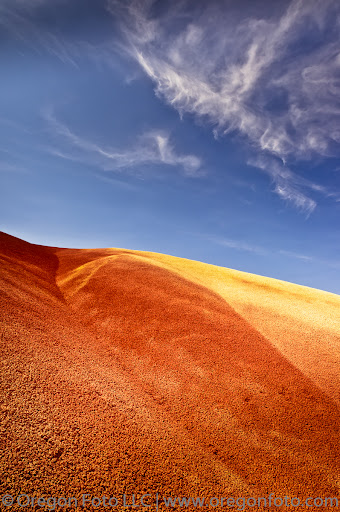The area is regarded as one of the most beautifully striking regions in Eastern Oregon. The Painted Hills receive their name from spectacular colors and banded striations that appear hand-painted with an artistic quality that seems almost unnatural and highly surreal. These colors shift in appearance throughout different times of the day due to the varying angles of the sun. They absolutely explode in vibrancy after a thunderstorm, with a full saturated color palette due to the polarizing light filtering the sun’s rays through the clouds. Colors range from burnt red, amber, orange, yellow, and gold, with streaks of black and grey reminiscent of an...