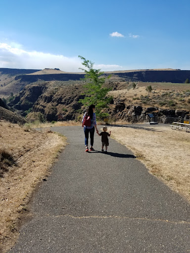 I like the eastern side of Oregon it is such a change from the western side. We drove over here as a day trip from the mid Willamette Valley. The little park is easy to find and is clean and well maintained. I am 67 and don't have the knees I once had. After heading down the asphalt path heading down towards the river, you cross over a nice wooden bridge. After that the trail becomes more "primitive". I do wish they had the opportunity to make a better path down to the viewing area for these falls. By September it is just powdery dirt and loose rock on a descending trial. Really easy to slip, I know! But I did make it to the two rocky overlooks. The White River Falls was not viewed at this time of the year because of decreased water. However, we will be back in April to try to see...